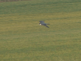 After lunch I spent some time at Skeffling before heading down to Kilnsea Wetlands to see if I could find an early Avocet. I didn't in the increasing wind, which was now very strong. The Brent flock was close to the road but I must admit my heart wasn't in another search for the Black Brant. It was now 4pm and I decided to head home to score some points with a quick house clean. I was rewarded for my conscientiousness when I noticed a pale lump in the middle of a field along Easington straight. By the time I'd pulled over and sorted my camera out it was unsurprisingly airborne. I did however manage a record shot...