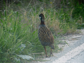 As we left a Black Francolin appeared in front of us. If I'd been a few years younger I might have got a better pic than one through the windscreen!