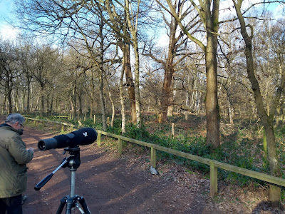 We could hear drumming coming from different areas and one seemed diagnostic of a Lesser...but we couldn't pick it out. Another Birder appeared and confirmed the bird we had heard was a Lesser as he'd seen it from the next path! We decided to walk this path and check out some trees in that area. As we were returning to our original position the drumming started again and this time I picked it out at the very top of a mature Oak. It didn't linger and unfortunately Phil couldn't get on it.